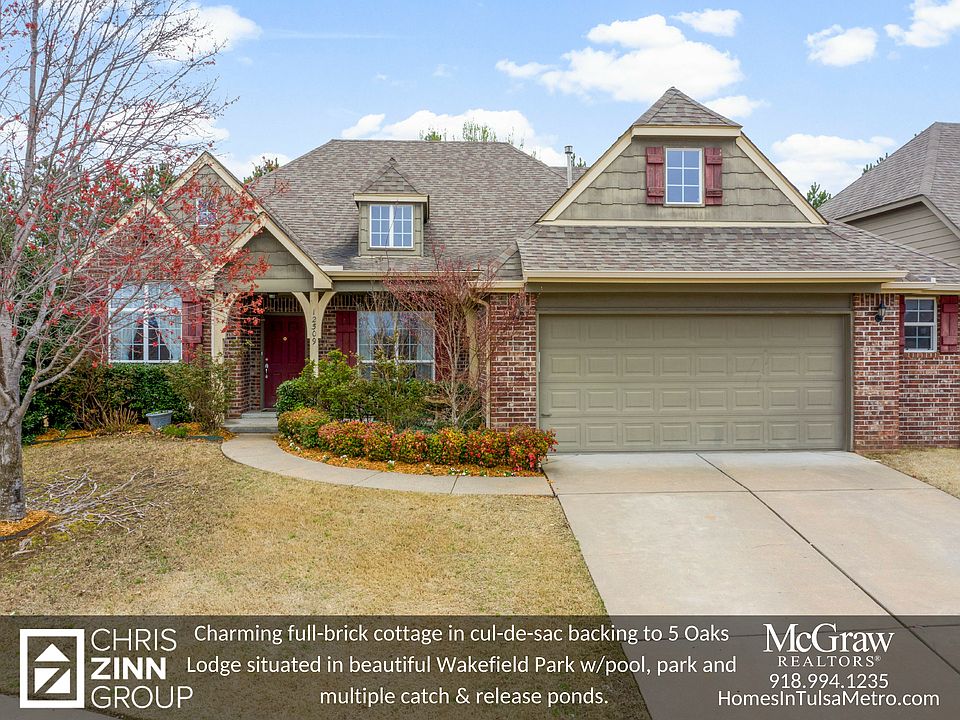 Stunning Immaculate full brick cottage in cul-de-sac backing to 5 Oaks Lodge. New roof 2019, fresh paint & carpet,and soaring ceilings thru out. Split floor plan w/3 beds down, game room/4th bed up, office, 2nd liv area, & 2.5 car garage! Open kit & Fam Rm w/brick fp, & wall of bright beaming windows. Lrg Master w/tray ceiling, 2 vanities & oversized walk-in closet. Game Rm or Fourth bed up has beautiful hardwoods & large closet. Peaceful neighborhood w/pool,park & multiple catch & release ponds.