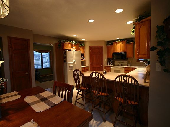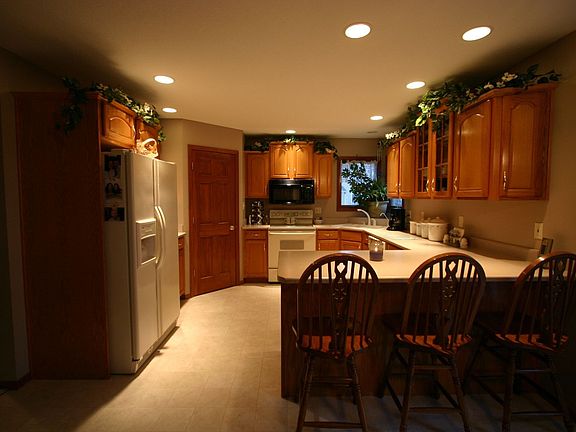 Immaculate one owner custom built home. Large corner lot with a maintenance free fence and spectacular pond view. Homeowner added many upgrades: trapezoid windows, glass block window, jetted garden tub, oversized garage, cabinet upgrades and a wrap around porch. Family room has a corner gar fireplace with an arched hearth and double mantel. Oversized bedrooms offer plenty of natural light with extra windows. Upgraded electrical thru-out and many can lights. Finished basement with a rec room, den or multi-purpose room, bar, and unfinished storage room. Floored attic with a wider pull-down attic stairs for extra storage. Water softener and window treatments remain