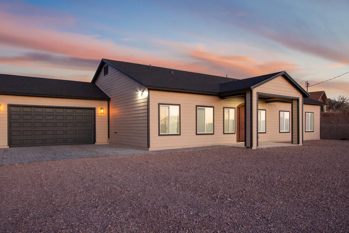 Paver walkwayPrimary suiteSweeping vistasModern en-suite bathroomCorner lotLarge lot sizeExposed wood beams
