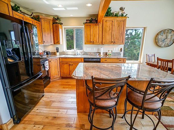 Nestled into the trees with expansive mountain, river and pastoral meadow views. Enjoy the tranquility of South Park. Custom home with loads of natural light boasting floor to ceiling windows in the living room, open concept kitchen. Main floor master, sitting deck, office, Lower level family room with a walkout, bonus room, Attached garage. Onsite RV hookups, camping pad. Excellent private fishing rights on the Middle Fork of South Platte. Furniture Negotiable. Easy 35 miles to Breckenridge!