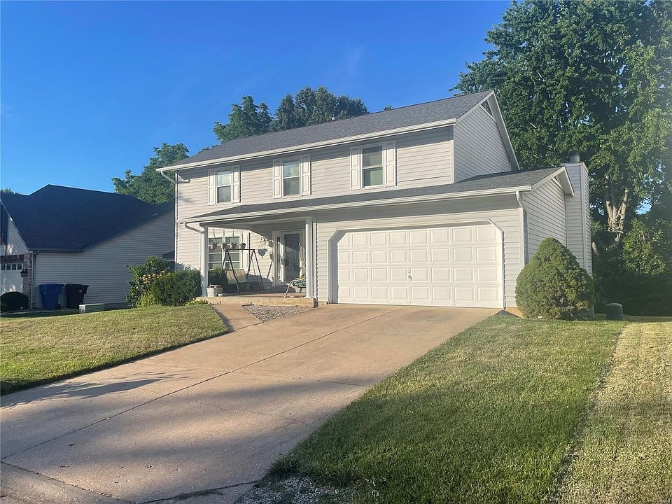 Beautiful 4 bedroom, 2-Story home located in St. Peters. As you walk in, you are welcomed by a formal living room that opens into the dining room and eat-in kitchen with a built-in coffee bar (Can be converted back into laundry) with hardwood floors. Back Living room includes a beautiful brick wood burning fireplace. Upper level includes master bedroom suite, as well as 3 additional bedrooms and a full bath. Finished lower level with walkout and another full bath and plenty of storage. Fenced in backyard, includes a deck from your kitchen to enjoy the warmer months, with a lot that backs to a wooded creek line.