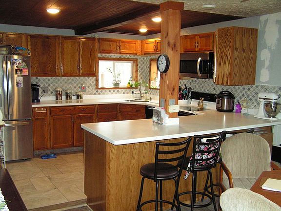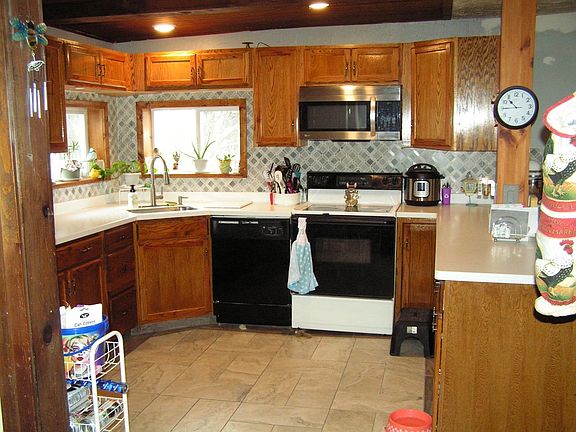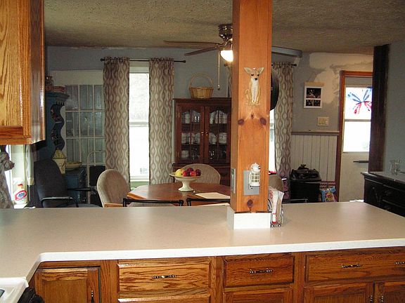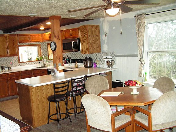 Very nice farmhouse style home recently updated. Two large bedrooms second floor, one bedroom first floor with deck.Large NEW kitchen, plenty cabinets, with Great Room dining area and wood floors. Large bright living room with wood floors and wood stove.Replacement windows, roof 8 years young.Two sheds for storage, workshop, or a few animals. Located in a country setting, yet only 1/2 mile to stores, restaurants, bank, school pool, etc.