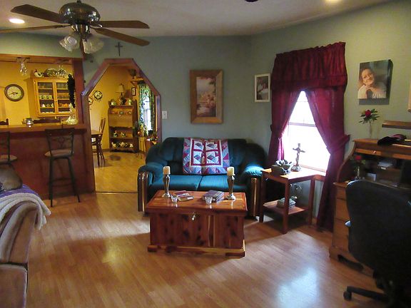 Enjoy Country Living in this home. This home offers three bedrooms with 1.5 bath. Large 27 ft. family room w/ Ashley wood burning stove, ceiling fans, laminate flooring. Kitchen has stained cabinets, snack bar, separate dining all with vinyl flooring. Large master suite, master bath w/tub and separate shower.