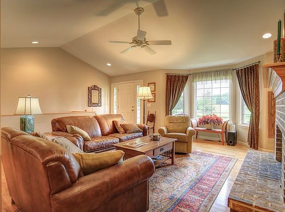 Beautiful country setting! Situated on 8 acres with mature trees, wildlife and room for horses. This one owner ranch home offers 3, bedrooms 2 and a half baths and over 2,900 square feet of living space. The main floor offers a family room, with cathedral ceiling and fireplace, dining room, spacious kitchen complete with granite counters, pantry and a wonderful view property. Master suite with large walk in shower. 2 additional generous sized bedrooms, full bath, laundry room. The walk out basement has a second family room, half bath, flex room that could be used as a fourth bedroom and abundant storage space. Additional offerings include, geothermal heating and cooling, 2 car attached garage and an over sized 2 car detached heated garage, dog kennel, deck with pergola, central vac. Easy access to I-72.
