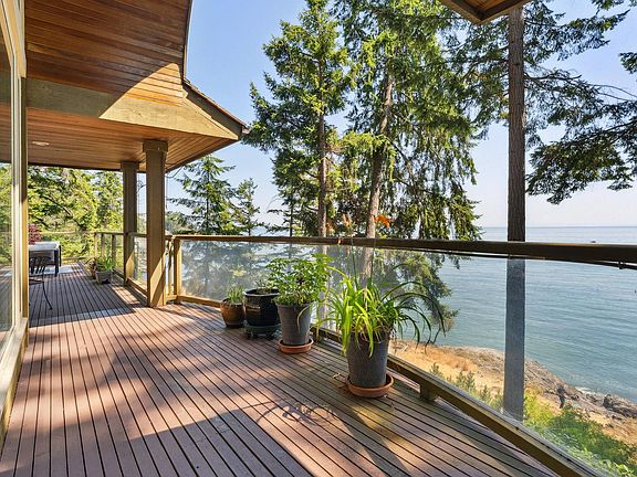 Fairweather Point – an enclave of architectural WATERFRONT homes sits on the South Shore of Bowen with views from Vancouver to the Gulf Islands. The coast here is alive with wildlife year round including seasonal visits from Humpbacks & Orcas. With a gently sloping backyard and a path of stone steps down to the water, you can go swimming any time. The spectacular views start at the front door and are showcased in almost every room. A dramatic 15’ barrel ceiling in the living room is the focal point of the open plan living/dining/kitchen. All rooms on the main floor have access to a 600+ sf south-facing deck, including the primary suite. Downstairs is a huge family room with French doors to the backyard, plus 3 more bedrooms. Excellent value for low bank WATERFRONT on Bowen Island.