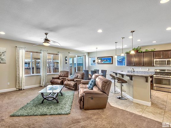 Welcome home to this 4 bedroom 2 bath, turn key property located in the heart of Gardnerville! Wonderfully maintained home with an open floor plan and so many upgrades! When you first walk up to the home you'll notice the gate that was custom made for the front porch that is truly so functional. The backyard has been upgraded with a gas stubbed fire pit, a large covered stamped concrete patio, with a ceiling fan, giving you a great canvas to finish the rest.