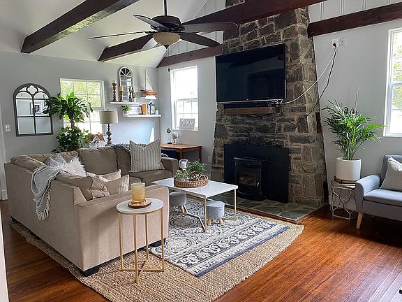This is the "HOME"... you have been waiting for! Stunning Water Views of Rock Creek without the Waterfront Price + 4 Total Lots Convey with the property! Rock Hill is a water privileged community offering a boat ramp, playground and community pier all within walking distance. Bring your boat, jet ski and canoe to enjoy water privileged living today! Huge open lot with plenty of space to spare and potential to add on an addition. Waterfront parcel (lot 22A) is approved & permitted for a 100 ft long 6 ft wide pier with 2 piling/Boat lift. Captivating 1940's Cape Cod is loaded with upgrades. The home boasts charm & original character w/14' ceilings, original exposed beams, stone fire place with new insert, rich hardwood flooring, recessed lighting and plenty of natural light. Owner has added a 3rd Bedroom w/closet, new vinyl privacy fence, new kitchen island w/backsplash, pantry, added insulation in walls, replaced steps to lower level, hallway closet, freshly painted the entire house & created an office nook in loft w/water views while you work from home. Detached Garage with 2nd level storage space. Newer Roof, siding, Windows, leaf guard gutters, HVAC replaced in 2017/2018. Nest, Ring and Exterior Cameras included. Seller has obtained approval for clearing and removal of trees/shrubs near stream. Lots have been merged and recorded by the county. Nature-inspired play areas, fishing, kayaking, boating and more! No HOA restrictions.