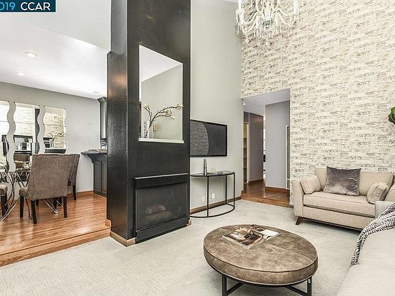 Beautifully updated 2 Bedroom / 2 Bath unit in desirable downtown Walnut Creek location. Walk to restaurants and shops! Modern and elegant feel throughout. Cathedral 17-foot ceiling in living room adds dramatic look to this spacious unit. Lots of organic light. New stainless appliances - refrigerator, stove, and dishwasher. New granite counters with modern glass tile backsplash. Newer dual-pane windows. Updated guest bathroom with new frame-less shower tub. New ultra quiet fans in both bedrooms. Walk-in master closet with Elfa modular shelving. New modern textured 100% wool carpet in living room. New carpeting in bedrooms. Gas fireplace. Flat screen TV mount in living room with in-wall wire tuck. Nestled in Redwood trees in rear of complex, this unit offers a peaceful and quiet location to come home to. FHA approved complex. No rental restrictions. Motivated sellers.