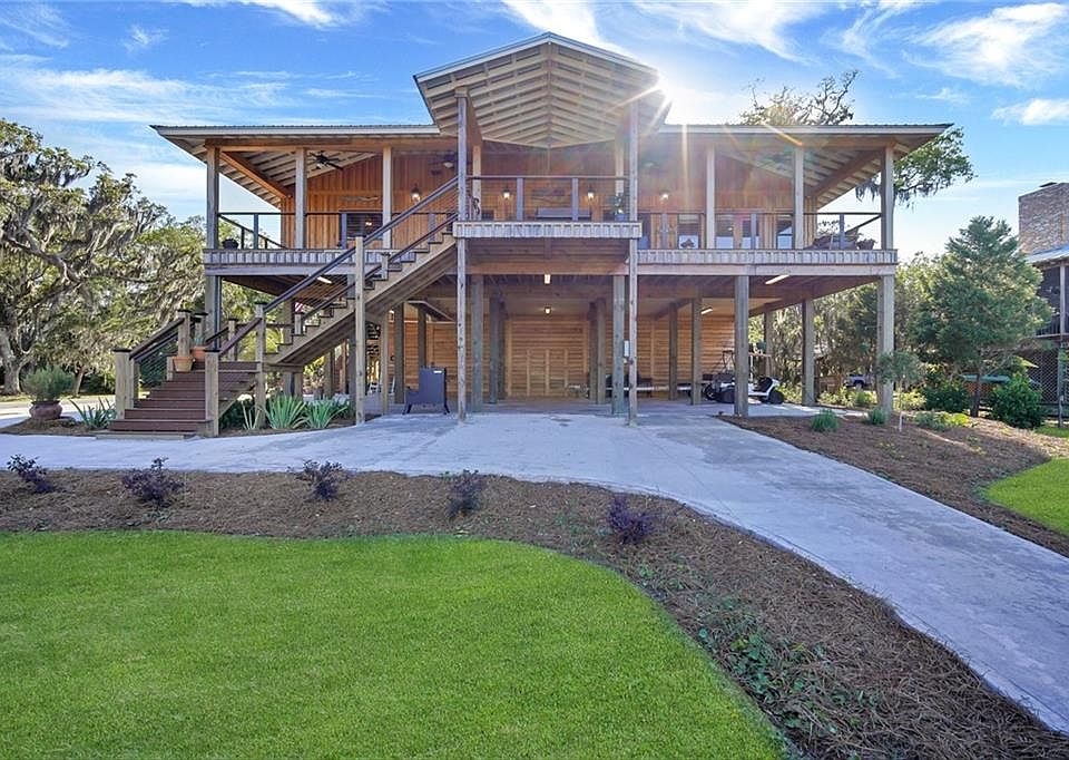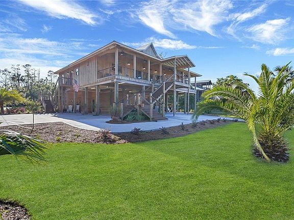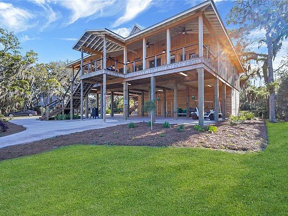 Breathtakingly beautiful, one of a kind, home on true deep water, with all of the upgrades you can want! This stunning 4 bedroom, 2 and a half bathroom home is truly move-in ready and in pristine condition. The home was completed in 2018 and careful attention was paid to every detail. The home features wood interior throughout without a single piece of sheetrock. The spacious living area is highlighted by the vaulted ceilings and oversized windows adorning the back wall providing gorgeous views of the coast. When looking outside you can't help but be mesmerized by the scenery of Atwood Creek, Doboy Sound, Sapelo Island out to the Atlantic. Features include a luxury elevator, Sonus surround sound, tankless water heaters, a private dock on deep water (25 feet at low tide) with a dry pad, boat and trailer parking, large workshop, oversized back porch, and it is being sold fully furnished. JoAnna Gaines would be envious of the decor in this beautiful home! This is truly one of a kind!