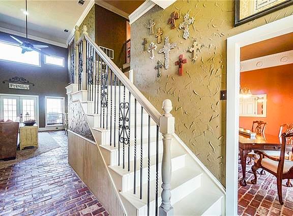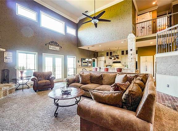 Rare opportunity to own a custom house on 4.5 AC of rolling pastures. Full workshop with living qtrs. Post tension 48 pier slab supports this beautiful home that boast beautiful brick floors, stone fireplace, granite and soaring ceilings, great views and storage everywhere. Looking for a home with 2 studies? This one has just what you have been looking for! Enjoy fresh air on the back deck overlooking a custom pool with slide and water features.