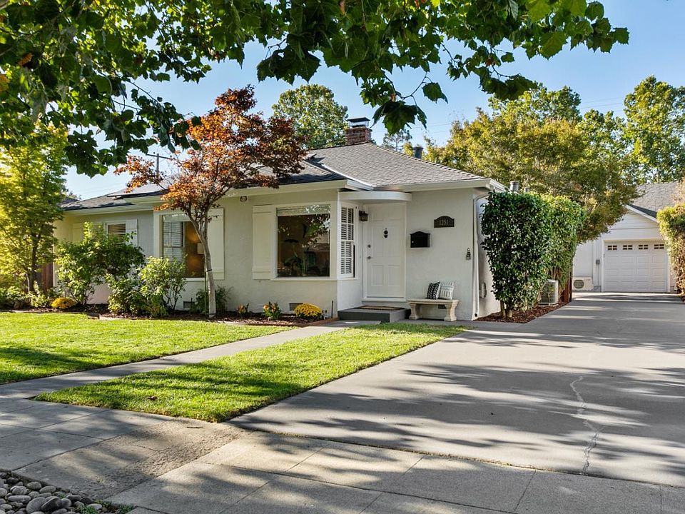 A touch of nostalgia in coveted Willow Glen. This meticulously maintained bungalow is a blend of timeless style, classic details and modern comfort. Stunning refinished hardwood floors, original 1940s vintage windows, arched thresholds, fireplace-warmed living room, and an open dining area lead to the newly remodeled eat-in kitchen with stainless steel appliances, farmhouse sink, white quartz countertops, stone tiled backsplash, and striking two-tone cabinetry. French doors open to the rear deck and yard. Adding to this propertys appeal is a permitted 488 square foot ancillary structure. This versatile bonus space features a vaulted ceiling, generous multi-use area with ceiling fan, loft-style mezzanine, full bathroom, air conditioning, and French doors. Outside, a lush lawn, manicured trees and colorful plants adorn the yard. An expansive patio area, plus the freshly painted driveway that spans from the street to the detached one-car garage rounds out the homes many highlights.