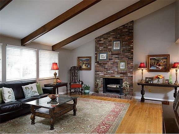 This house has been transformed into a beautiful home! The solid wood entry door w/leaded glass sidelights and leaded glass palladium window above. Gleaming hardwood flooring throughout living and dining rooms. The living room boasts beamed cathedral ceiling, floor to ceiling brick fireplace. The formal dining room offers accent light and sliding door to a brick patio. This fabulous kitchen is a cooks dream! Two tired center island, granite counters, cherry wood cabinetry, SS appliances, vegetable sink, ceramic flooring and backsplash. Updated hallway bath, master suite, two additional bedrooms. The fabulous family room features built in cherry cabinetry and a desk, accent lighting, floor to ceiling brick fireplace. Convenient updated powder room and a nice size laundry room, lots of room for storage. Brick patio off the dining room, tiered fenced in yard with a vegetable garden! Interior has been freshly painted! Montclair Community Pool! Blue Ribbon School District.