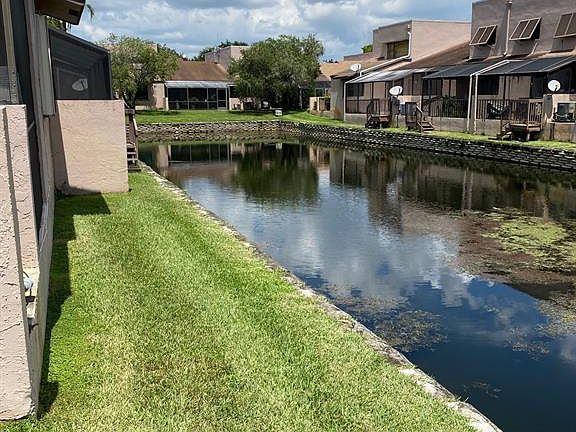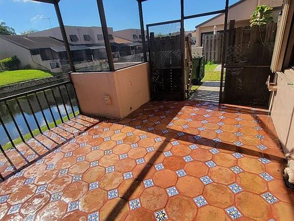 Beautiful hard to find, highly sought after canal front townhome in Flamingo Villas...2 bedroom 2 bath with a very spacious screened and tiled patio overlooking the water. Updated Bathrooms and Kitchen...Granite countertop, wood cabinets...located in a private and peaceful location...clubhouse has every amenity you could possibly want! Gym, Sauna, Racquetball, tennis ,playground, beautiful pool ++New hot water heater in 2022. Accordion Hurricane Shutters...Full size washer and Dryer... LOW HOA FEES! Great schools! Security is awesome with a 24 hour manned guard house and roving patrol! Convenient access to shopping, restaurants, parks, hospital and highways!