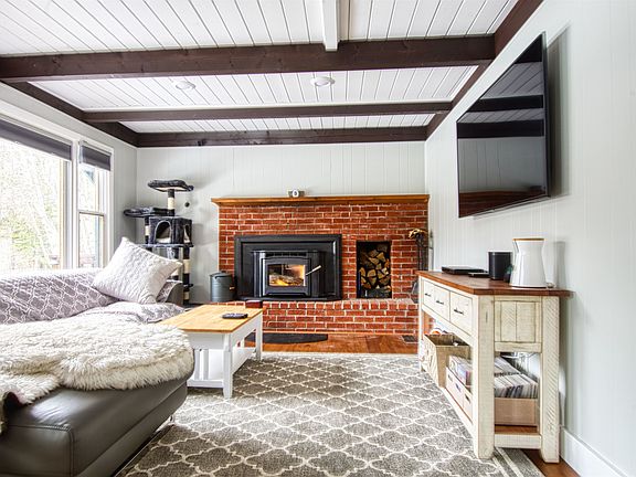 Come see this charming chalet nestled between Franconia Notch and downtown Franconia. This 3 bedroom, 2 1/2 bath house would be perfect as a primary or a vacation home. The first floor has an open concept kitchen, dining room, and living room with a fireplace. The lower level has a large family room with a wood stove, and a bedroom with a separate bath and laundry. The second floor master bedroom has a balcony and an updated bathroom. The home flows well with ease for entertaining on the 12 x 34 deck or the patio below. Cannon is conveniently less than 3 miles away. Enjoy all the White Mountains has to offer; hiking, snowmobiling, golf, kayaking, ice fishing, and more. Delayed showing with an open house on Saturday, June 1st from 10 am to 2 pm.
