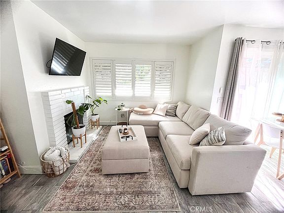 Cozy and Upgraded 2 Bedroom, 2 Bath End Unit Condo Perfect for first-time homebuyers! This beautifully upgraded 2-bedroom, 2-bath end unit condo features laminate flooring throughout and is in pristine, move-in-ready condition. The well-designed floor plan offers a spacious living room with a cozy fireplace, a designated dining area, and a stackable laundry closet. Your a/c and heater can be controlled with the Nest System. The primary bedroom includes a private bathroom with a tile shower and ample closet space. Both bedrooms share a long, peaceful balcony at the back of the unit, and there's an additional front balcony as well. The HOA covers maintenance, water, and trash bills. The gated complex features a pool, spa, a 1-car garage with storage space, and an assigned parking spot. Conveniently located just minutes from the 215 and 10 freeways, this home is a must-see! Don't miss out on this move-in-ready opportunity.
