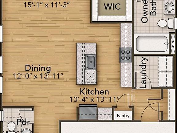 - Features: Kitchen Island, Pantry, Stainless Steel Appliances, Solid Surface Counters
