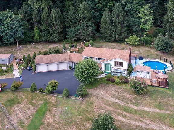 If you are looking for the same old house, this one is NOT for you. If you are looking for a place with endless possibilities you won't want to miss this opportunity! This home has been lovingly created and maintained by its original owners. Over the years it has seamlessly accommodated multi-generational living with two kitchens and separate living spaces, a flourishing HOME BUSINESS with private entrance and EXTRA PARKING to accomodate, as well as large gatherings with family and friends on the expansive patios surrounding the pool and the bar area in the lower level. Sited on over an acre of land with views of the valley and mountains to the front and side and woods for privacy in the back, you will feel like you are living in your own oasis. To round out this spectacular property there are two large sheds (one that can accommodate a car), a three car garage, and GENERAC AUTOMATIC GENERATOR for the practical side during these strange times. This is a MUST SEE!