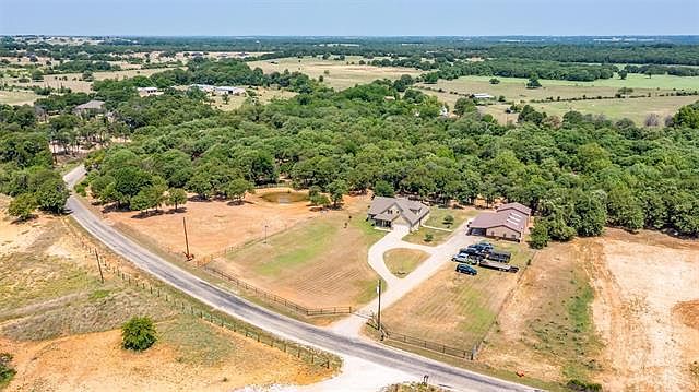 GORGEOUS home situated on 10+ acres in highly desired Peaster ISD! This home has always been one of my personal favorites starting with THE KITCHEN! It comes equipped with custom cabinetry, SS appliances, granite counter tops, decorative lighting, pot filler, huge walk-in pantry and real rock accents that add a ton of charm. This property also includes a RV storage with clean out nearby, 30x70 shop with electric, restroom, loft for extra storage and 2bdrm 1bath living quarters. The living quarters is fully functional with kitchen, full bath and utility room. The land is beautiful and has beautiful mature trees in a park like setting and is perfect for someone wanting to escape the city and enjoy quiet country evenings. Property is already AG EXEMPT!