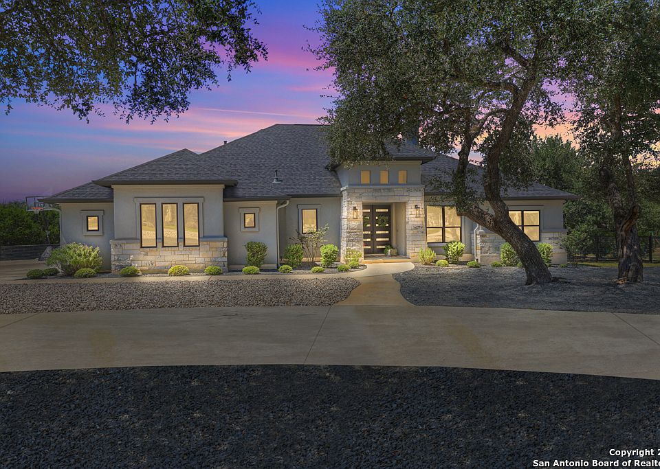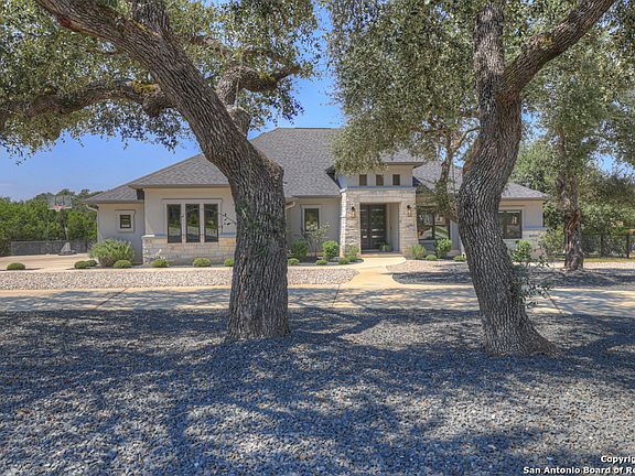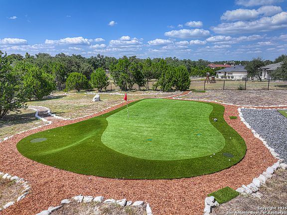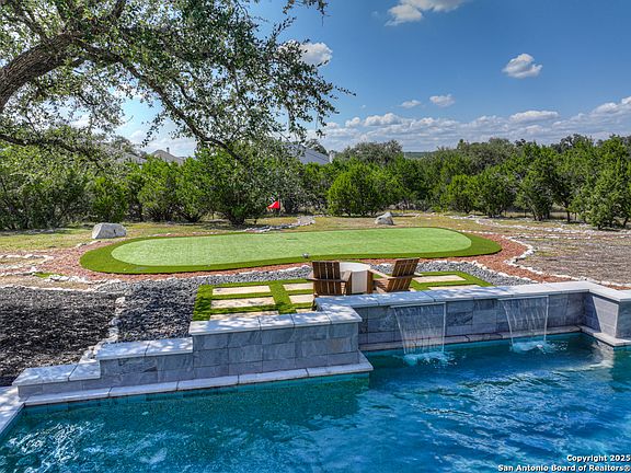 Welcome to this exceptional 4-bedroom, 3.5 bath home built by Grand Endeavor Homes, and nestled in the prestigious Vintage Oaks community where Hill Country charm meets modern luxury. Thoughtfully designed with superior craftsmanship, and a functional open layout, this single-story home showcases premium finishes throughout and a stunning outdoor living space complete with a full kitchen, sparkling pool, and a PGA- level putting green with six tee boxes. Situated on a beautiful xeriscaped acre lot, this single story home exudes elegance from the moment you arrive. Soaring ceilings, wide plank floors, and expansive windows flood the home with natural light while providing picturesque views of the surrounding hill country. The chef's kitchen is a dream, featuring high-end appliances, a spacious center island with quartz countertops, custom cabinetry, and a walk-in pantry- all seamlessly connected to the great room and dining area for effortless entertaining. The spacious family room features a gas fireplace, built in shelving, tray ceilings, and oversized windows. In addition to four generously sized bedrooms, this home offers both a dedicated office that is perfect for remote work or even as a quiet reading space- as well as a separate game room, ideal for family fun, media, or entertaining guests. The expansive primary suite is a true retreat, featuring elegant tray ceilings and abundant natural light. Its spa-inspired en suite bath includes a luxurious soaking tub, oversized walk in shower, dual vanities, and a spacious walk-in closet-combining everyday comfort with high-end style. Step outside to your personal backyard oasis where luxury living continues. The expansive covered patio features a full outdoor kitchen, remote controlled shades, and ample space for lounging and dining. From here, enjoy views of the sparkling pool and a premium golf practice facility- a rare combination that delivers relaxation, entertainment, and recreation right at home. As a resident of Vintage Oaks, you'll also enjoy access to world-class amenities, including resort-style pools, a lazy river, a state-of-the-art fitness center, and miles of scenic hiking, biking, and walking trails. Sports enthusiasts will appreciate the basketball, tennis, pickleball, soccer, and softball facilities-all designed to support an active, vibrant lifestyle. This home offers the perfect blend of luxury, functionality, and Hill Country living. Don't miss your opportunity to make it yours.