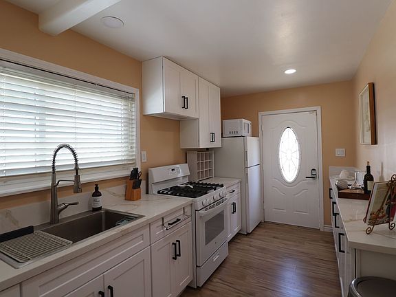 Discover your oasis in this oversized studio with distinct kitchen and sleep areas that is also located close to the heart of Old Town Orcutt. The furnished interior allows you to bring your suitcase and move in! The living room is equipped with a cozy couch, chair, and smart TV as well as an electric fireplace with a fan which creates the perfect ambiance and also heat for the chilly evenings. The innovative coffee table cleverly converts to a dining table, ensuring you can quickly adapt the area from relaxation to dining or workspace according to your daily needs. The kitchen is an open-concept delight featuring white appliances and a new microwave. It is set against freshly laminated countertops, providing both style and function. Whether you're a novice or a skilled chef, this kitchen is perfect for preparing delightful meals. The tranquil bedroom area has a queen-sized bed, double nightstands, a dresser, and a full-size closet for ample storage. A freshly updated bathroom boasts a walk-in shower, single vanity, and toilet, all designed with your comfort in mind. One of the unique features of this property is its private backyard, offering a serene space to relax outdoors. The entire space features easy-maintenance flooring...vinyl in the living space and sleek tile in the bathroom. Bonuses include a large driveway providing ample parking space and utilities in the rent, making this a hassle-free choice. Delight in the balance of traditional charm and modern convenience in this exclusive apartment, ready to be your new home sweet home.