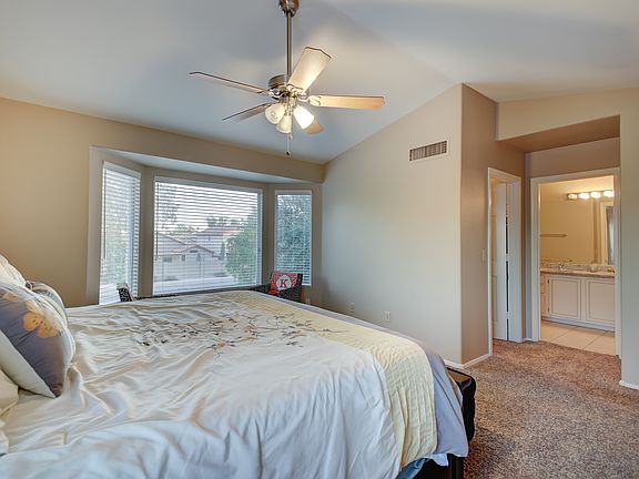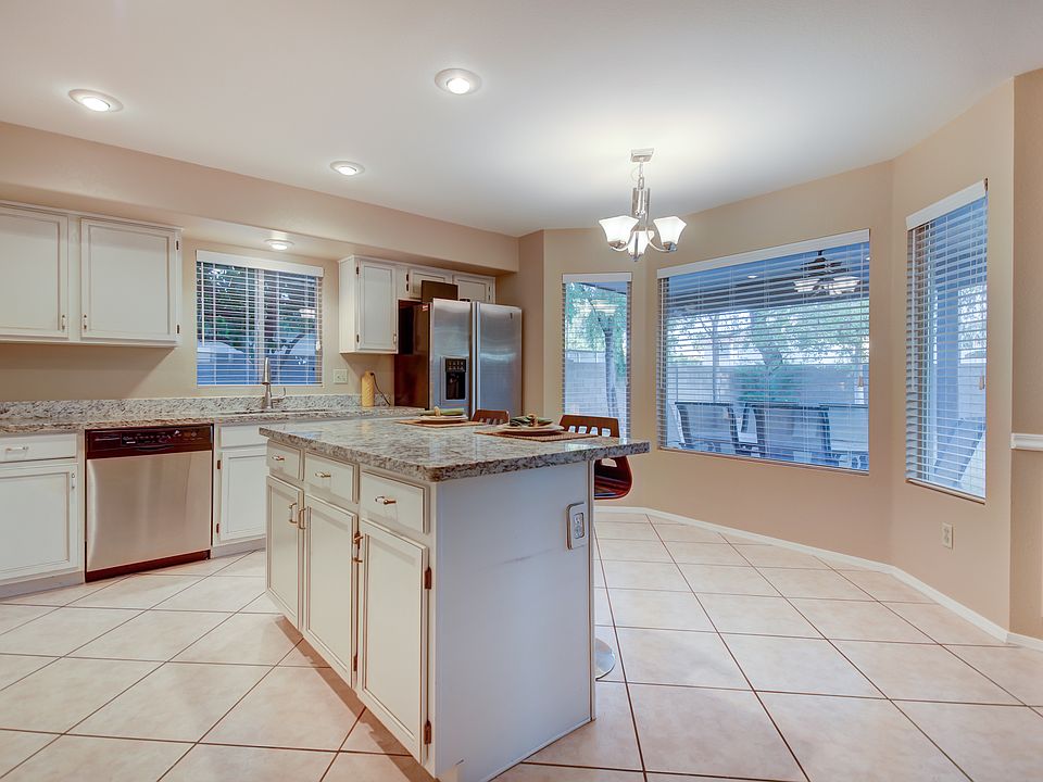 From the moment you walk into this light, bright, and airy home you will be impressed. Notice the extensive neutral tile throughout. The kitchen has stainless steel appliances, light cabinets and granite slab countertops. The same cabinetry and granite is also in the 2.5 bathrooms in addition to tiled showers. You can cozy up to the stone wood burning fireplace and enjoy the large backyard. This is an immaculate home and will not last long.