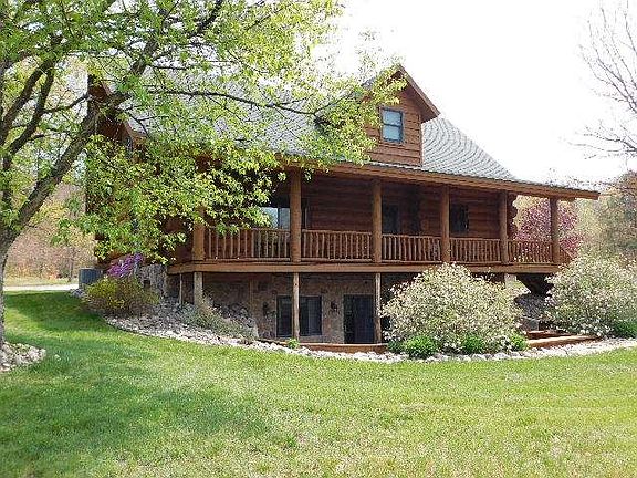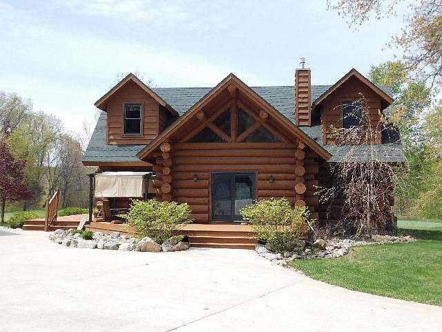 Stunning, custom built log home on 5 acres in Clare County! Enter the long drive that keeps this house secluded from the road & arrive at your own slice of northern Michigan heaven. Built in 2003 this home has over 3,600 sq ft of living space. A convenient entry room offers coat storage & has a 1/2 bath off it. Kitchen has hardwood flooring, hickory cabinets & stainless steel appliances. There is a large eating bar & a door to the covered porch overlooking the acreage. Living room has open beam vaulted ceilings & a fireplace w/ a stone surround & a door wall leading to the open deck. Main floor master suite w/ full bath & walk in closet. 2 bedrooms & a full bath upstairs. Full basement has a large family room, laundry room & walks out to a covered patio w/ built in seating. 3 car garage for parking & a huge 30x40 pole barn w/ lean to. Huge concrete area for parking, bike riding or basketball. Additional land may be available.