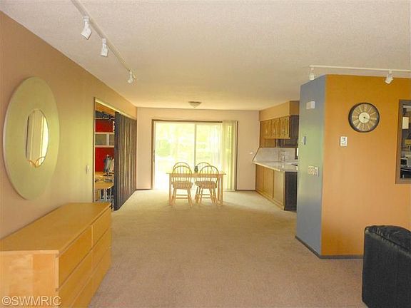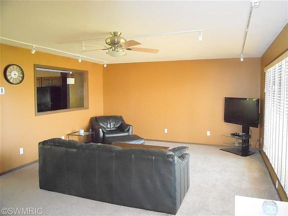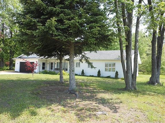 OPEN FLOOR PLAN RANCH SITUATED ON 3.6 WOODED ACRES! This home offers large living room w/wall of windows & the spacious fully applianced kitchen w/plenty of cabinet/counter space is open to dining area that steps down to huge family room with brick wood burning fireplace. Both dining room & family room have sliders to the backyard that overlooks the wooded setting. Master bedroom has huge walk-in closet & the updated bath has double sinks & a walk-in shower. 2 stall attached garage. You'll love the location~ just across from Michigan's Adventure Amusement Park for lots of summer fun! Call today for you private showing.