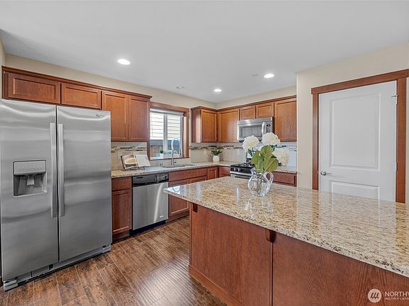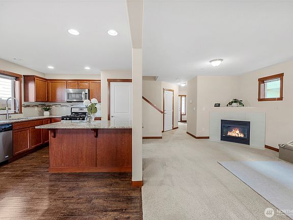Offering the perfect blend of style and functionality, this beautiful 4 bedroom 2.5 bath home features many upgrades. Espresso Shaker kitchen cabinets, crown molding, wood wrapped windows and more. Open Kitchen with island and granite counter tops, titled bathrooms throughout, vaulted ceiling entryway with an array of high windows. You love the gas fireplace in the inviting family room of the chef's kitchen. All stainless steel appliances. Discover the fenced backyard with deck that is perfect for summer evenings and barbecues. Primary bedroom suite with vaulted ceiling, 5 piece attached bath, soaking tub and big walk in closet. Perfectly situated close to Boeing, shopping and award winning Mukilteo Schools.