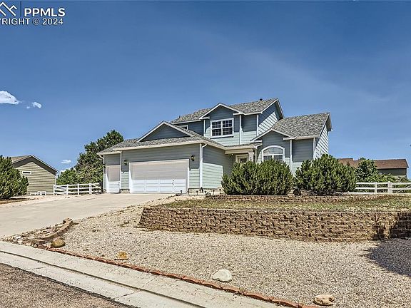 This wonderful 2-story home, set on a sprawling half-acre lot, is a true gem. The kitchen is a chef's delight, featuring stainless steel appliances, ample cabinetry, and a walk-out deck perfect for outdoor dining. Hardwood laminate flooring flows through the kitchen, nook, powder room, and dining areas. The living room boasts vaulted ceilings and a cozy gas fireplace, creating a warm and inviting atmosphere. The main floor also includes a convenient laundry room. Upstairs, the master suite is a private retreat with a soaker tub, separate shower, and walk in closet, plus it is accompanied by two additional spacious bedrooms. The finished basement extends the living space with an extra bedroom, bathroom, and a large walk-out family room, ideal for gatherings and entertainment. The home features a large 3-car garage and additional RV parking on the side of the home, plus a storage shed. Recently painted, the exterior radiates curb appeal. Located in the desirable Woodmen Hills golf course community, residents enjoy access to two clubhouses, swimming pools, a weight room, cardio room, walking trails, and parks. Conveniently located this home offers the space you desire with but with all the amenities close by.