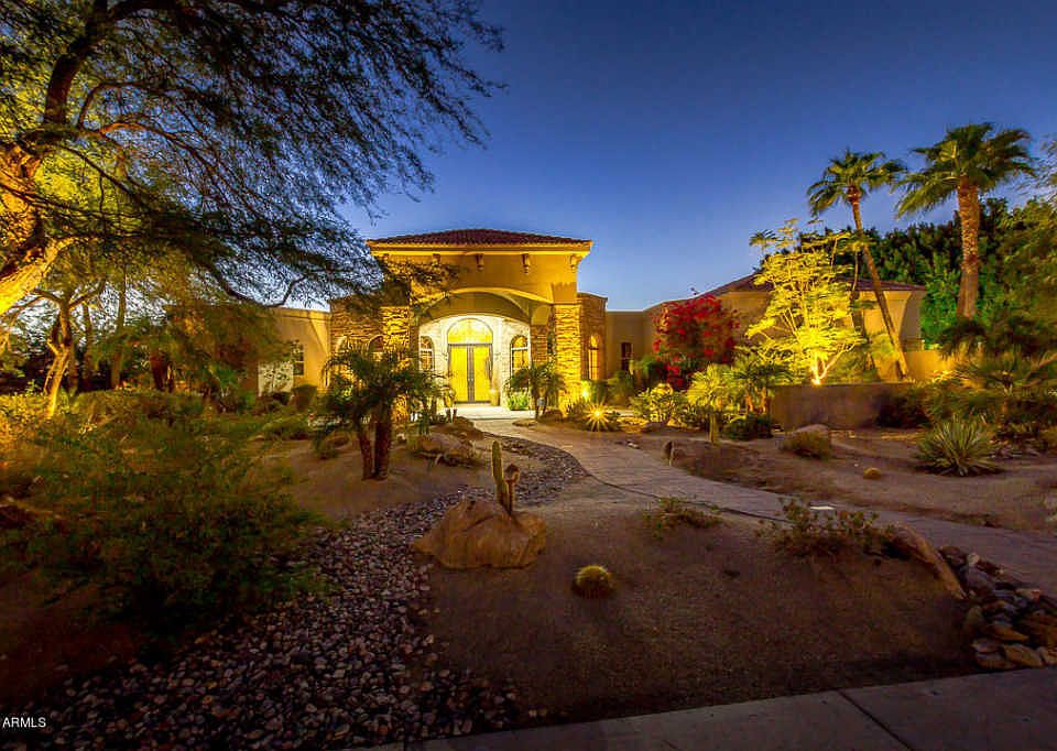 Cactus Corridor Estate with 1357 sq ft 2-bedroom guest house! This home is designed for generational living! Totally renovated and exquisitely appointed. The grand porte-cochere entry with circular drive leads to the massive Glass/Iron custom door. The main home features four en-suite bedrooms plus an executive home office. Architecturally fabulous with extensive use of stone floors and canterra accents throughout. A dream chef's kitchen with custom cherry cabinetry, Wolf and Subzero appliances, Miele coffee maker, and enormous island for entertaining! This acre+ lot captures city lights, Camelback Mtn views, and includes a sports court. The double stacked garage holds 5 cars! Close to BASIS Scottsdale, Cheyenne Traditional School, MAYO, Honor Health, and other great amenities.