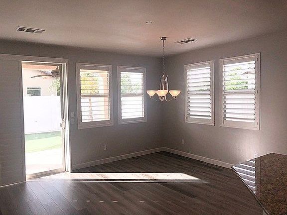 Prestigious Brighton Park 55+ active gated community! Home is TURN KEY and READY to go! This immaculate 1460 sq. ft. home with modern color scheme is freshly painted throughout the home and has high quality laminate flooring professional installed, new baseboards, new carpeting in the 2 bedrooms, plantation wood shutters throughout, granite kitchen counters with tumbled natural stone backsplash, upgraded master bath with walk-in sports shower. Custom garage cabinets with plenty of spacious shelving, low maintenance backyard with synthetic lawn/putting green, complete rain gutters on house. Refrigerator and 2 TV's included in price.