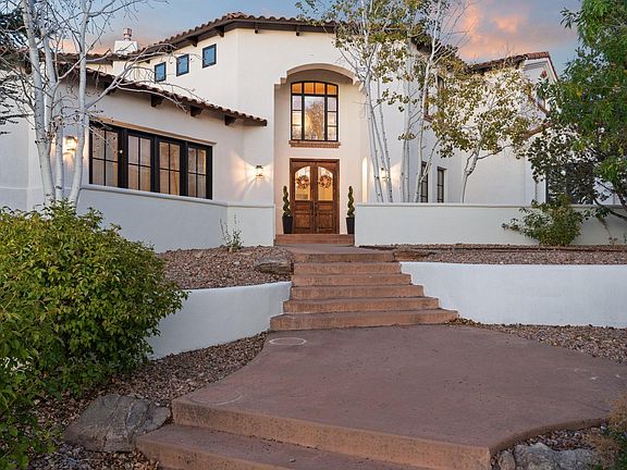 Welcome to an extraordinary custom home in Primrose Point! This Mediterranean-inspired residence boasts impeccable attention to detail and expansive indoor and outdoor spaces perfect for entertaining. The main level features a large open kitchen that flows into the family room, with patios offering stunning views of the city and Sandia Mountains. A sweeping staircase, cathedral ceilings, and wood beams elevate the ambiance. Step into the outdoor oasis with a pool-ready backyard and a spacious 700-square-foot Casita, ideal for guests. The beautifully landscaped yard bursts with vibrant blooms from spring through fall. Inside, a versatile downstairs area offers space for gatherings, a gym, yoga room and a theater. Don't miss the chance to make this marvelous estate your own!