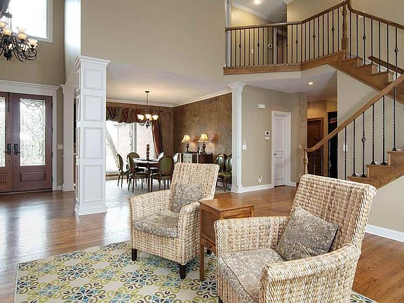 A grand dream home that is elegant in every way, yet conveniently located, and comfortable. A 1 1/2 story home situated on more than a 1/2 acre lot beautifully landscaped lot! Features in the home that stand out are hardwood floors, newer Anderson Windows, tiled roof, and new carpet throughout. Two story high ceilings in the formal living room, centered around a floor to ceiling fireplace. Gorgeous double doors in the entry and decorative tiled formal dining area surround by the wood floors. The kitchen features are stainless appliances throughout, granite counters, eating bar, informal eating area, two pantry areas, one walk-in the second in the kitchen cabinetry! The kitchen opens to a delightful and cozy hearth room for comfort and entertainment enjoyment. This area leads to the deck and patio! In-ground pool for family fun! The pool is heated as well! Large windows overlook area. The master bedroom is very roomy at 17 X 16, easily accommodating large furniture! The master bath suite has tiled flooring, his and her granite vanities, whirlpool tub, oversized walk-in shower, water closet, and large walk-in closet with built-ins. The finished basement displays a third fireplace, wet bar with wine cooler and plenty of room for guests and entertaining opportunities. Each bedroom has an attached bath or Jack/Jill bath layout. All the baths have been updated with tiled showers and fixtures throughout the home. This home is move-in ready!