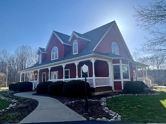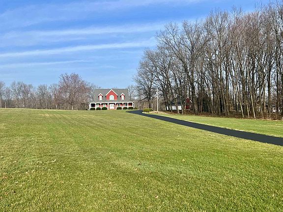 Unique Opportunity to own this Beautiful Property on nearly 3 acres with a Large inground heated swimming pool with an automatic filtration system. 3 large porches to sit & relax overlooking the countryside. Charming woodwork throughout home. Appealing features include Crown Molding, Hardwood floors, bay windows, Hickory kitchen cabinets, Vaulted Celings, 9 foot ceiling, mainfloor laundry. 3 car detached garage. Home has large rooms with lots of natural light. Open concept with loft area looking down to Great room with a large Gorgeous wood burning Fireplace. Master Bedroom on Main floor. The Master Bath has jetted tub, double sinks, large closet plus you can walkout to swimming pool from master bath. The bedrooms upstairs have large dressing rooms with closets. Bedroom in basement has a pullout door in closet leading to an egress window in unfinished basement area. Plus a family room, full bath, and 2 other finished rooms. Recent Updates include the following: New furnace, A/C, water heater in 2018. New automatic filtration system & Boiler for pool in 2021. New Roof 4 years ago. Driveway resealed in 2021. Fiber optic internet available. Just image at night time walking down the concrete steps at a lighted pool with changing lights surrounded by nature. Offers will not be reviewed until Sunday, April 10th at 6:00 p.m.