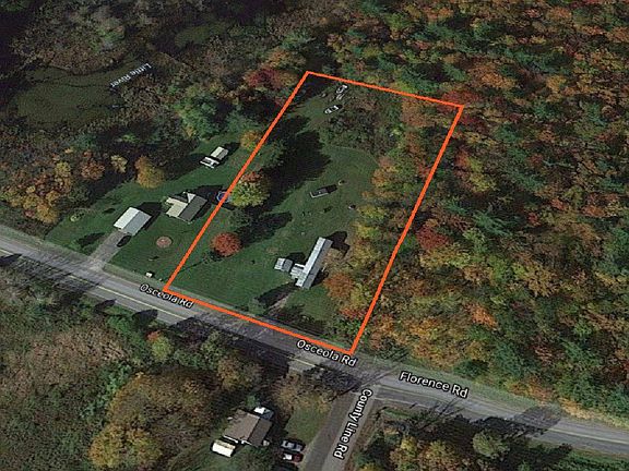 1.63 acre Country Home For Sale Near State Lands and Trails Florence NY! Fixer-Upper Camp or Country Home, Close to Snowmobile Trails! 1.63 acres with 1970 model single wide includes some bump-outs for extra room. There is a cozy kitchen area with an island and dining room, a living room, laundry room, full bathroom, 2 bedrooms, and a mudroom. Home needs some work but would make a great location for North country hideaway close to snowmobile trails and several thousand acres of state forests. Could be a nice year-round home but the home could use some outside cosmetic work and some interior work. Small storage shed next to home for storage and really nice yard for gardening and campfires. 15 minutes to Redfield Reservoir. 5 minutes to Florence hotel or Osceola Hotel. Minutes to snowmobile trails and State Forests. 20 minutes to Camden, NY.