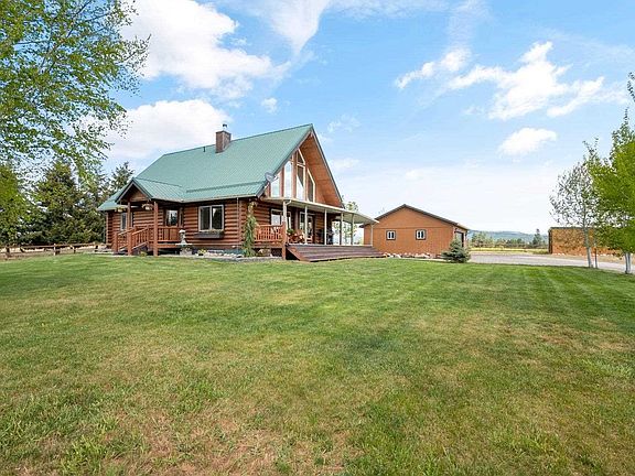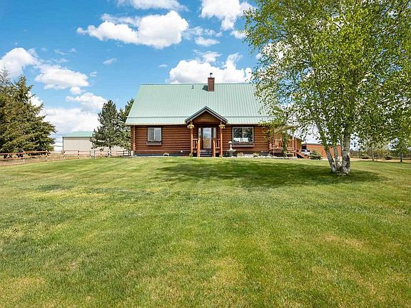 You will love the country lifestyle with stunning sunsets, beautiful mountain view, peaceful breeze, amazing stargazing from hot tub and abundant wildlife including: deer, hawk, quail, pheasant, hummingbirds, eagles and elk! One of a kind country log home with fabulous horse set up and top quality interior home updates. Newer: kitchen, flooring, re-stained/sealed logs, smart thermostat, carpet, water tank, paint, some windows, plumbing/lighting fixtures, bathrooms and stunning master bath remodel and more! 2+ car garage, 60 x 40 pole barn/shop with two stalls and great hay storage, newer lean-to for additional storage, covered deck, dog kennel, fenced and cross fenced acreage and yard area sprinklers. Convenient 10 minute access to shopping, restaurants and fabulous Freeman school district!