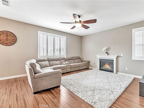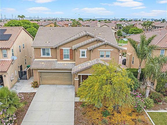 LOCATION…LIFESTYLE…OPEN FLOORPLAN. Located in a highly sought-after Eastvale neighborhood, this newer 2-story home offers convenient access to amenities, schools & recreational facilities. With its impressive design, spacious layout & luxurious features, this property presents an exceptional opportunity for those seeking a refined and contemporary living experience. Custom paint pallet throughout the home with contrasting white baseboards. This home offers an abundance of space, boasting 5 bedrooms, 3 full bathrooms, plus a huge loft. There is 1 bedroom & FULL bathroom downstairs. Upon stepping into this residence, you will be greeted by beautiful laminate flooring, upgraded baseboards, recessed lighting, high ceilings, and plantation shutters that set the tone for the impeccable home. The main level effortlessly blends an open concept design with defined living areas, creating an ideal environment for both relaxation & entertaining. The heart of the home resides in the spacious gourmet kitchen. It showcases beautiful cabinetry, island, kitchen window & walk-in pantry. Adjacent dining area provides a delightful space for casual dining for hosting memorable gatherings. The living room is bathed in natural light, courtesy of large dual-paned with plantation shutters. Cozy gas fireplace turns on easily with the flip of a switch and serves as the centerpiece, inviting you to unwind and enjoy quiet evenings. Upstairs you will find a large, versatile loft area that can be transformed into a home office, playroom, or additional living space to suit your needs. The second floor is dedicated to the private living quarters, featuring 4 generously sized bedrooms. Upon entering primary suite, you are immediately struck by the sheer size of the space. The room boasts high ceilings and an abundance of natural light streaming creating an airy and inviting atmosphere. The walk-in closet is amazing with room to create a custom closet of your dreams. The en-suite bathroom has a soaking tub, separate walk-in shower, and dual vanities. The additional bedrooms offer ample space, ceiling fans, plantation shutters & closet space. The laundry area has its own room with sink and floor to ceiling storage cabinets. With no neighbor directly behind the home, there are beautiful mountain views. The backyard has a stamped concrete patio with garden boxes and several fruit trees. Harmony Park is a short walk away. No HOA dues. Welcome home.