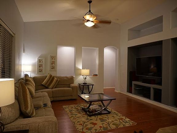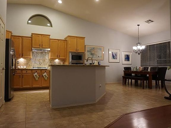 Well maintained, move-in ready home in prestigous Wigwam Creek subdivision. Upgraded kitchen with flat top gas stove, newer SS appliances, newer upgraded granite. Owned alarm system. Garage key pad. Garage has door to back yard. Master bedroom has access door to back yard. Bedrooms have upgraded wood flooring. Large, nicely landscaped back yard with tropical fruit trees. Desired north-south exposure with big covered patio in back. Sunscreens on windows.
