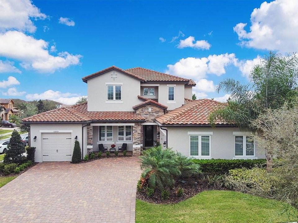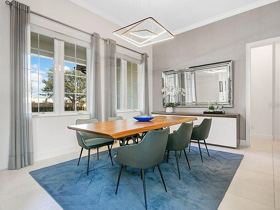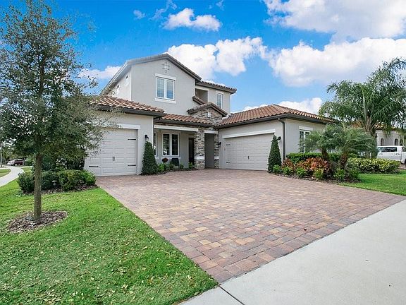 Luxurious 4 bedrooms 3 and a bath pool home located in the exclusive, gated Casa del Lago neighborhood. This house offers a spacious layout with upgrades galore, including a chef's kitchen with quartz countertops, 42" shaker cabinets, elegant backsplash, stainless steel appliances, built-in gas cooktop, and wine cooler. The inviting entryway opens to a formal dining room with a butler's pantry that leads to the large captivating kitchen with a cozy eat-in nook and warm living room with peaceful views of the pool. The deluxe downstairs master suite offers optimal privacy with plenty of space to unwind. The chic master bathroom offers separate vanities and an oversized shower and a stunning walk-in closet. An additional bedroom downstairs offers even more convenience and privacy. Upstairs there is a large loft and 2 ample bedrooms. The heart of this home is the backyard oasis with a custom pool with mosaic tiles, an outdoor dining area, and a massive outdoor kitchen with top-of-the-line appliances. This executive home is located in the middle of Winderemere and includes one year of social membership at Golden Bear Club and is only minutes from shops, restaurants and less than 20 minutes from Walt Disney World.