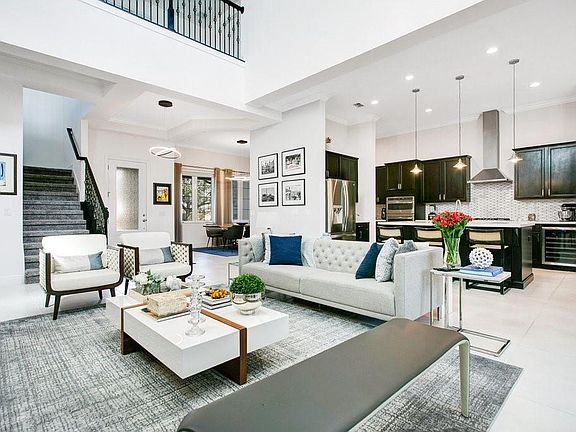 - Interior Features: Ceiling Fans(s), Eating Space In Kitchen, High Ceiling(s), Master Bedroom Downstairs, Open Floorplan, Split Bedroom, Walk-In Closet(s), Crown Molding, Kitchen/Family Room Combo, Solid Surface Counters, Built in Features, Window Treatments, Cathedral Ceiling(s), Vaulted Ceiling(s), Tray Ceiling(s), Coffered Ceiling(s)