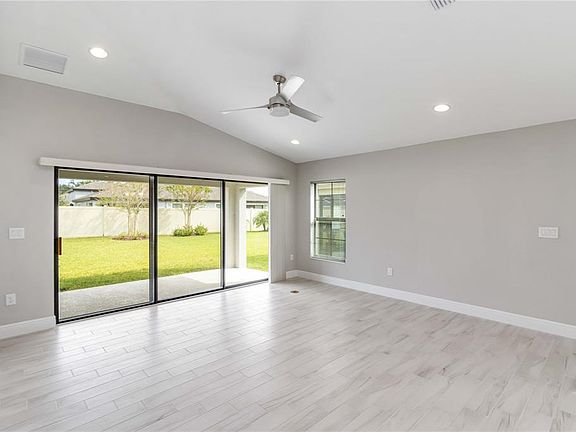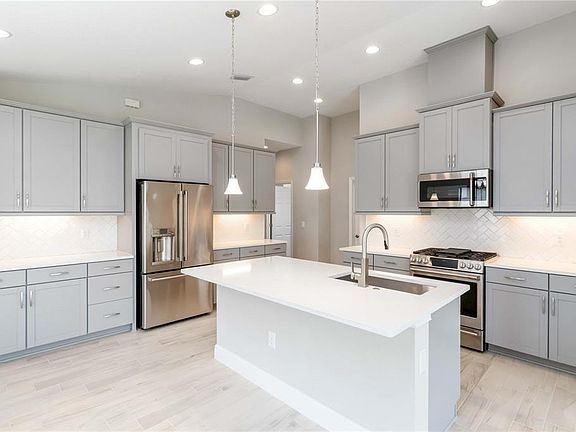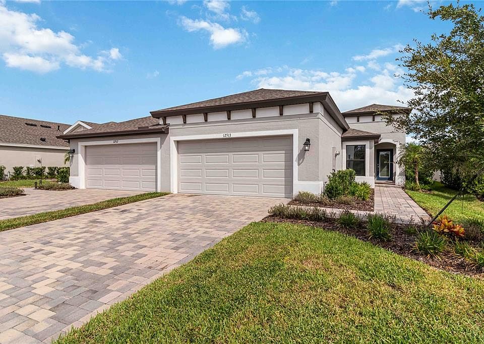 BETTER THAN NEW!! Only lived in for one year, this like new villa is loaded with upgrades that are NO LONGER offered by the builder, including GE Café series appliances, FULL 1-inch high-grade Quartz countertops (not half inch), PREMIUM floor tile (not vinyl tile), Upgraded Kitchen Cabinets, and the kitchen vent which exhausts outside, not back into the kitchen! The plentiful windows and 12-foot sliding door fill the 1,534 square feet of living space with natural light. The VAULTED CEILINGS throughout the villa ensure each space feels open and airy. The deluxe kitchen is LOADED with modern features just waiting for you to enjoy. 42-inch cabinets with crown molding, a coffee bar, under cabinet lighting, glass tile backsplash, large island, and a walk-in pantry just to name a few. The large owner’s suite offers a luxurious en suite with dual sinks, quartz countertops, makeup vanity, oversized walk-in shower with bench, and an expansive walk-in closet. Family and guests will enjoy the two additional bedrooms and beautifully designed guest bathroom. A convenient laundry room with NEW GE Profile washer and dryer is located inside next to the convenient “drop zone”. The spacious two car garage has a professionally finished epoxy coated floor and is plumbed for a water softener. Outside, you will enjoy MAINTENANCE-FREE living, a park-like conservation area across the street, a partially fenced backyard and generous sized lanai that faces North which keeps it in the SHADE throughout the day. Crosswind Point amenities include a community pool with cabanas and a playground. Additional amenities are under construction at the new Crosswind Ranch which connects to Crosswind Point.