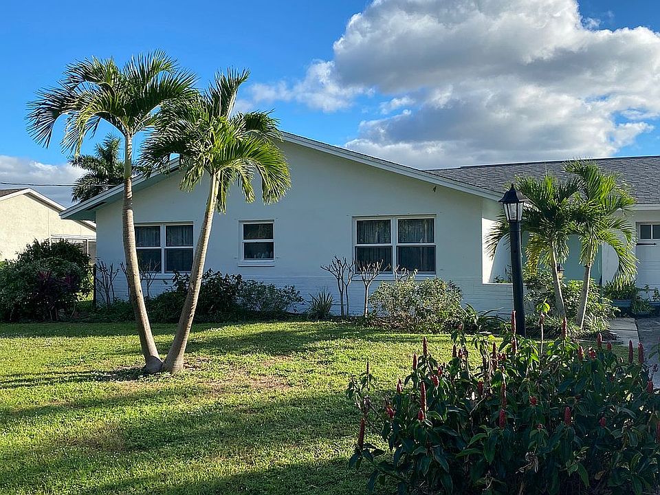 This is a great deal for a home within a stone's through of the Caloosahatchee River on a deep water canal - the Gulf side of the Locks as well. House has 3 bedrooms, 2.5 baths and sits on almost 1/2 acre of land. 1617 square feet of living large so close to the river, hanging on your screened lanai or lounging on the canal with a fishing pole in your hand. Both bathrooms have been updated with wood cabinets and solid surface countertops and the master has a brand new shower with glass walls and new tile in the second bath shower/tub as well. This home is ready for your personal touch and then live the life of your dreams on the water.