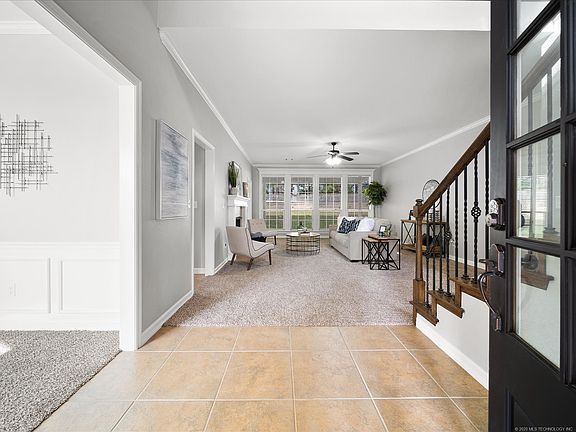 Beautiful Jenks home in desirable Wakefield Park! This 4 Bdrm 2.5 Bth 2.5-car features a spacious living w/FP & wall of windows. The chef's Kitchen is ideal for entertaining with center island, new stainless appliances, breakfast nook & open to Formal dining (c/b office). Downstairs Master w/sep whirlpool/shower. Nice size bdrms, massive game room, Walk out attic that c/b 5th Bdrm. Covered patio, backs to Five Oaks Lodge! Cul-de-sac, walking distance to Pond/Park/Pool. Bixby Schools. Will Go Quick!