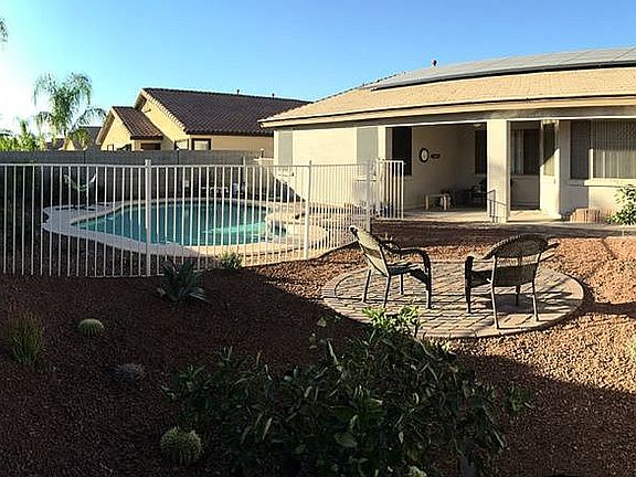 TURNKEY, WELL-MAINTAINED HOME ON PRIME NORTH-SOUTH LOT IN WIGWAM CREEK SOUTH - This Persimmon model by Fulton Homes features an open floor plan. Living room w/ gas fireplace & built-in media wall. Open-style den w/ 2 built-in desks & upscale cabinetry. Kitchen w/ breakfast bar, including newly refinished counters & cabinets in 2020. Spacious master suite. Walk-in closet in master & 2 closets in 4th bedroom. Partially updated bathrooms. New flooring in bedrooms. 18-inch tile in all the right places. Beautifully landscaped front yard. Fully landscaped backyard with low maintenance plants and variety of fruit trees along with established grapevine. Covered patio w/ paver addition & fenced pool. Garage w/ sink & built-in cabinets. Leased 6.860 kW SOLAR SYSTEM w/ solar panels on south side of roof. New 10yr warranty gas water heater. New roof in 2021 with 10yr warranty. 2 A/C units. Single level w/ no interior steps. Community parks nearby. Floor plan posted in Documents section of listing.