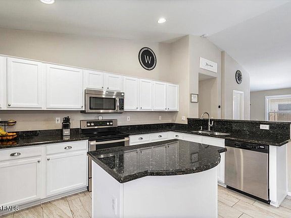 A must see - this incredible four bedroom, move in ready home is located in popular Avondale. Vaulted ceilings in the entry and great room provide a spacious open concept. Both the primary and secondary bathrooms are newly remodeled. The kitchen has granite countertops with plenty of counter space and an island. There is beautiful and continuous tile throughout the entire home. The fourth bedroom has a built in desk and cabinets that makes it perfect for a work at home office. Outside you'll find a wonderful low maintenance backyard complete with a pool and water feature. There is a backyard shade structure great for entertaining as well as a putting green. A spacious side yard off of the covered patio and the south facing backyard is definitely an added bonus.