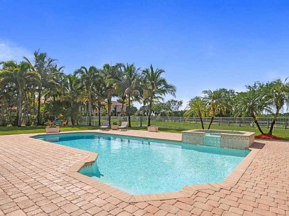 Magnificent Mediterranean Estate Home located on a cul-de-sac overlooking polo fields, lake and the bridal path with no rear neighbors! This is an entertainers delight with spacious open and covered screened patios, heated pool with hot tub and fenced backyard surrounded by lush tropical landscape.The first floor master suite includes an elegant marble master bath, large his and her closets, plantation shuttes and tray ceilings. The family room and open kitchen are centrally located in the center of the home with 20' ceilings and sliders to the pool and patio, perfect for family and friends.There is also an additional bedroom on the first floor. The second floor includes a loft, three bedrooms and two full bathrooms.This is a great home to enjoy for the season or for year round living.