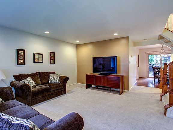 Great end unit, finished lower lvl w/ fpl, shady deck, new carpet & flooring. Big ticket items updated: roof, HVAC, rear windows, fridge, toilets ~ ready to move in! Eat in kitchen, HDWD in dining rm, bumpout window in living rm. Vaulted ceilings upper lvl. BA rough in lower lvl. Walk to lake, pool, shops, tot lot, close to 270. Pool, lawn & amenities. Extra storage built in. 2 assigned parking.