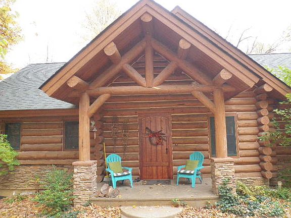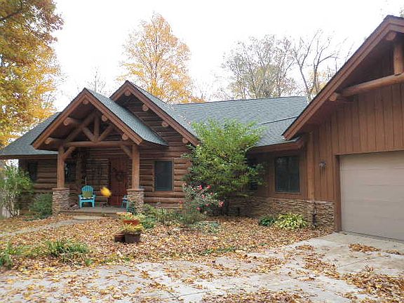 SALE PENDING: Custom built with Montana white pine, this private log home is located on 13 wooded acres on the Wildcat Creek in Howard County. A 2 car attached garage and a 54'x30' pole barn provide ample storage for any outdoor enthusiast or craftsman. Two decks, a sun room, and a large back patio provide opportunities to entertain or simply view the river and wooded ravines. A large stone fireplace in the living room, a Swedish Scan wood stove in the family room, and subtle outdoor lighting around an outdoor fireplace allow for year round warmth and enjoyment inside and out. Stairs provide private access to the river with a lower deck to store canoes or kayaks. If you enjoy nature and the outdoors, this home is a rare find in central Indiana as it is located within Western school district and driving distance from Kokomo and Lafayette.
