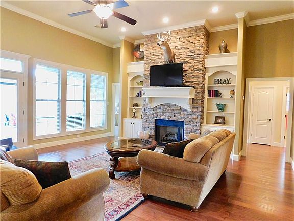 Custom built with stunning detail! Open floor plan perfect for entertaining! Stunning floor to ceiling fireplace in living room, crown molding, many windows & built-ins. Kitchen with beautiful custom cabinets, granite counter tops and large grand island w/ deep drawers. A space for everything! Extra room with built-in desk for command center. 9', 10' and 12' ceilings. Bonus/Entertainment room (possibly 4th bdrm) w/ half bath. Much more to see! Located in lovely neighborhood on cul-de-sac.