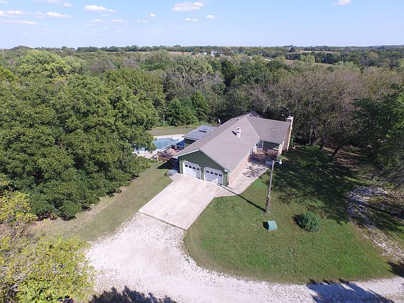 Beautiful country home on 20 acres. The house has a walk out basement with a in ground 18x36 swimming pool. Four outbuildings for farm animals, storage or shops. Excellent property for the people who want country living close to Manhattan and in the Rock Creek School district.